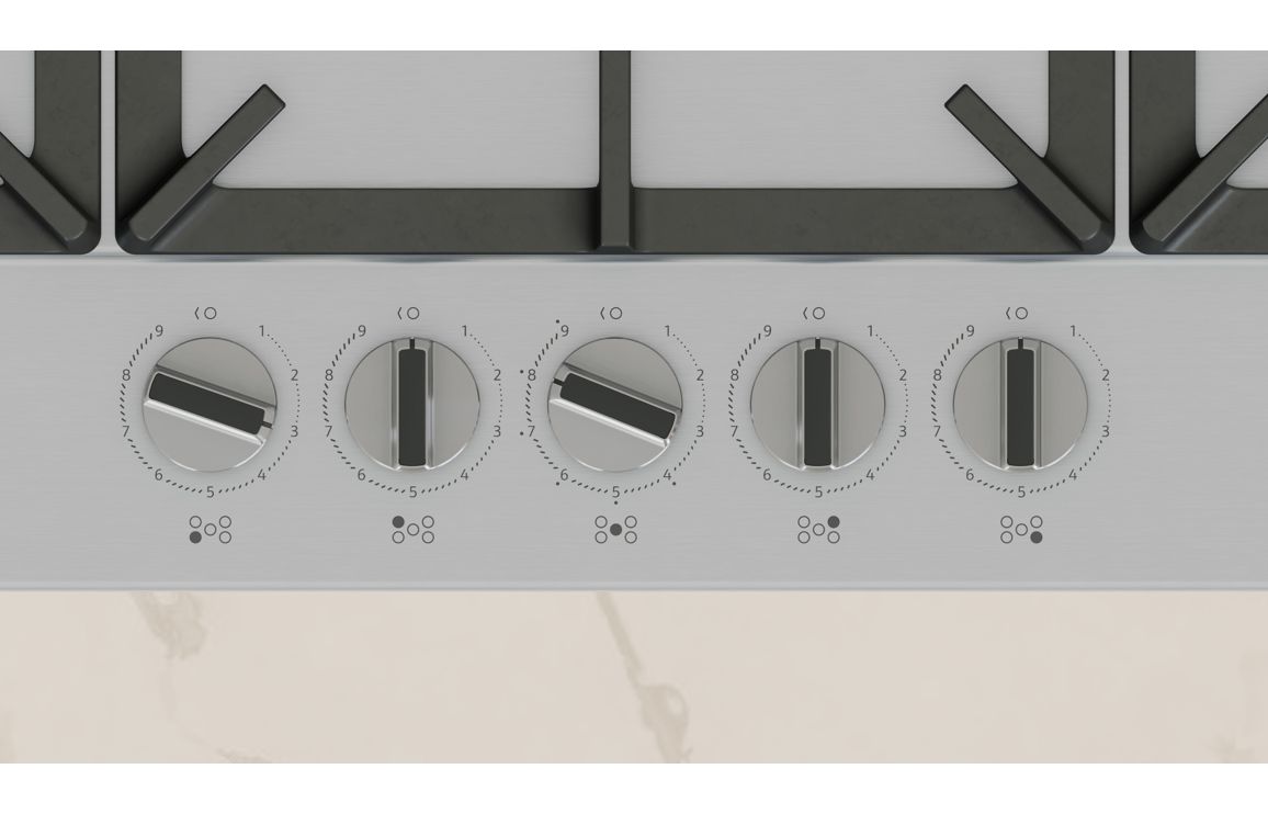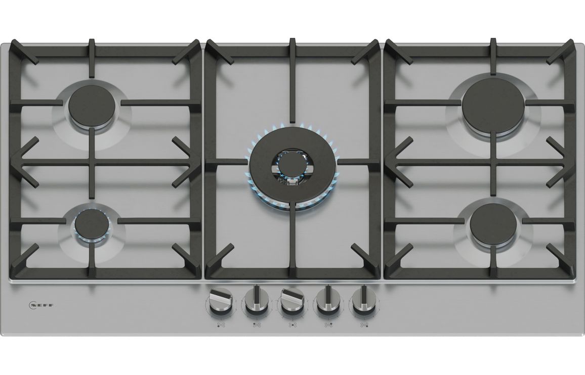 A Built In Neff Gas Hob in Stainless Steel • Number of Cooking Zones – 5 • Dimensions: H 51.5 x W 915 x D 520mm