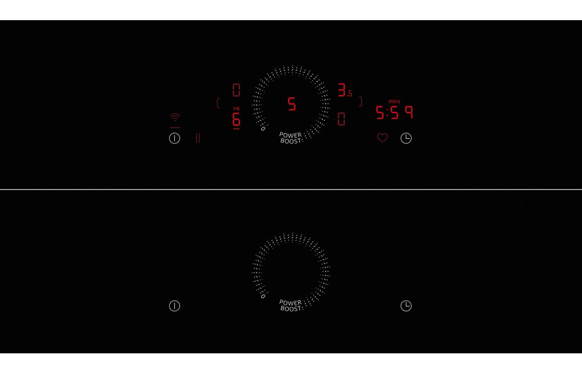 • Combi Induction: combine two circular cooking zones when using large cookware