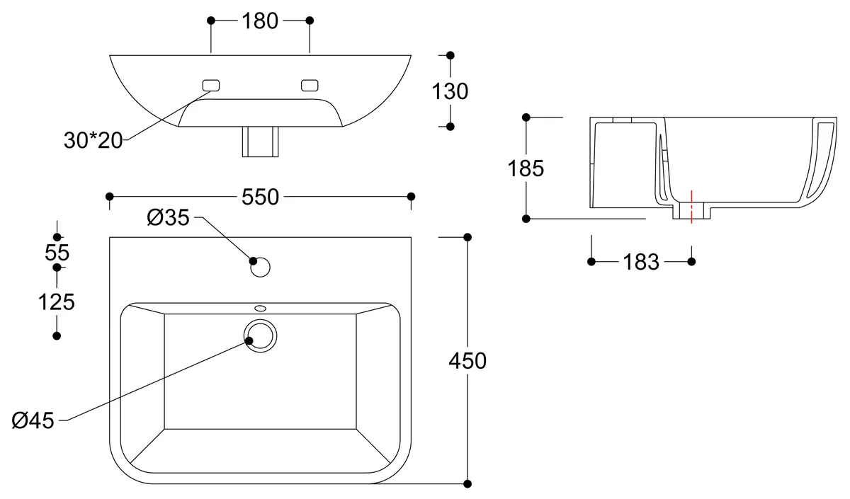 Includes: Basin & Full Pedestal • Comes with 1 Tap Hole • Dimensions: H 835 x W 560 x D 450mm