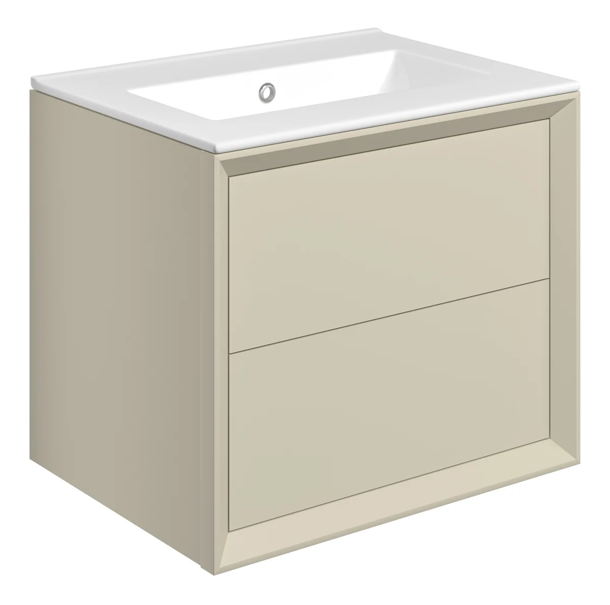 Novello Clarix 610mm Wall Hung 2 Drawer Basin Unit & 0TH THin Edge Basin – Matt Cotton