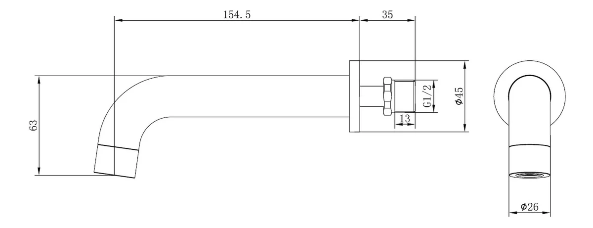 Novello Dovira 155mm Wall Mounted Basin Mixer – Matt Black