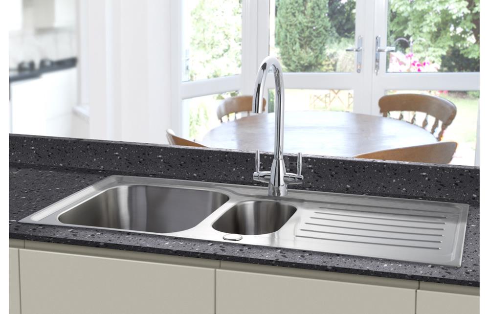 - A Prima 1.5 bowl inset sink in Stainless Steel