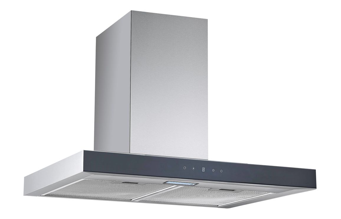 - A Wall Mounted Prima Chimney Hood in Black & Stainless Steel