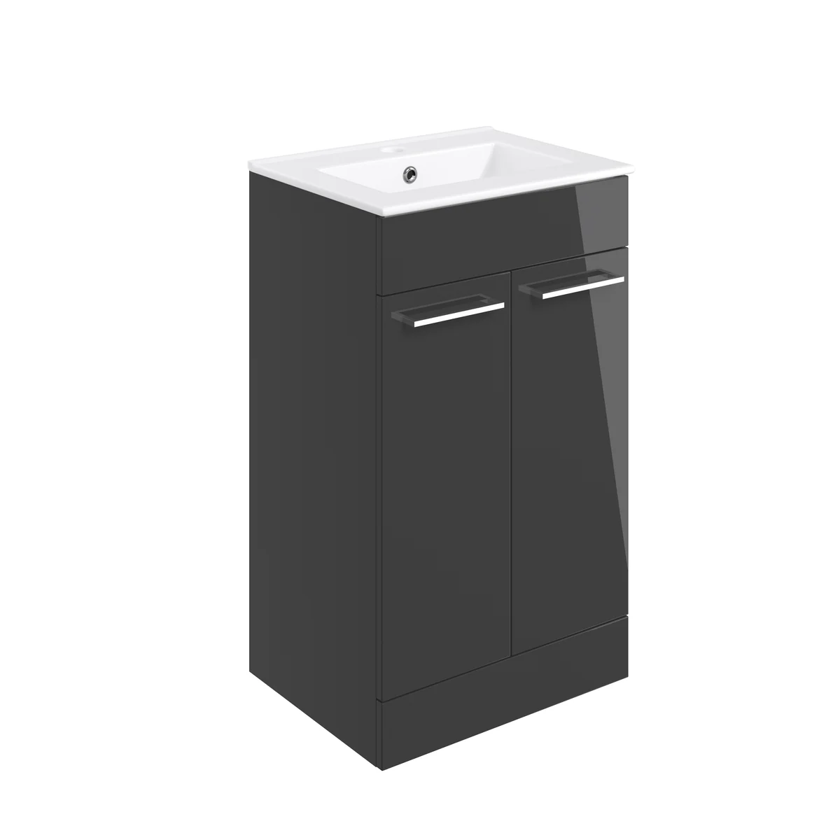 Novello Nolvra 510mm Floor Standing 2 Door Basin Unit & 1TH THin Edge Basin – Anthracite Gloss