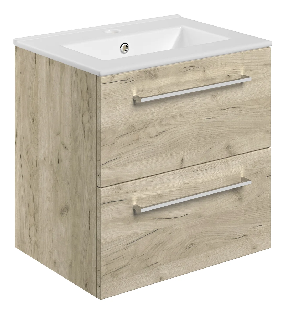 Novello Nolvra 510mm Wall Hung 2 Drawer Basin Unit & 1TH THin Edge Basin – Oak