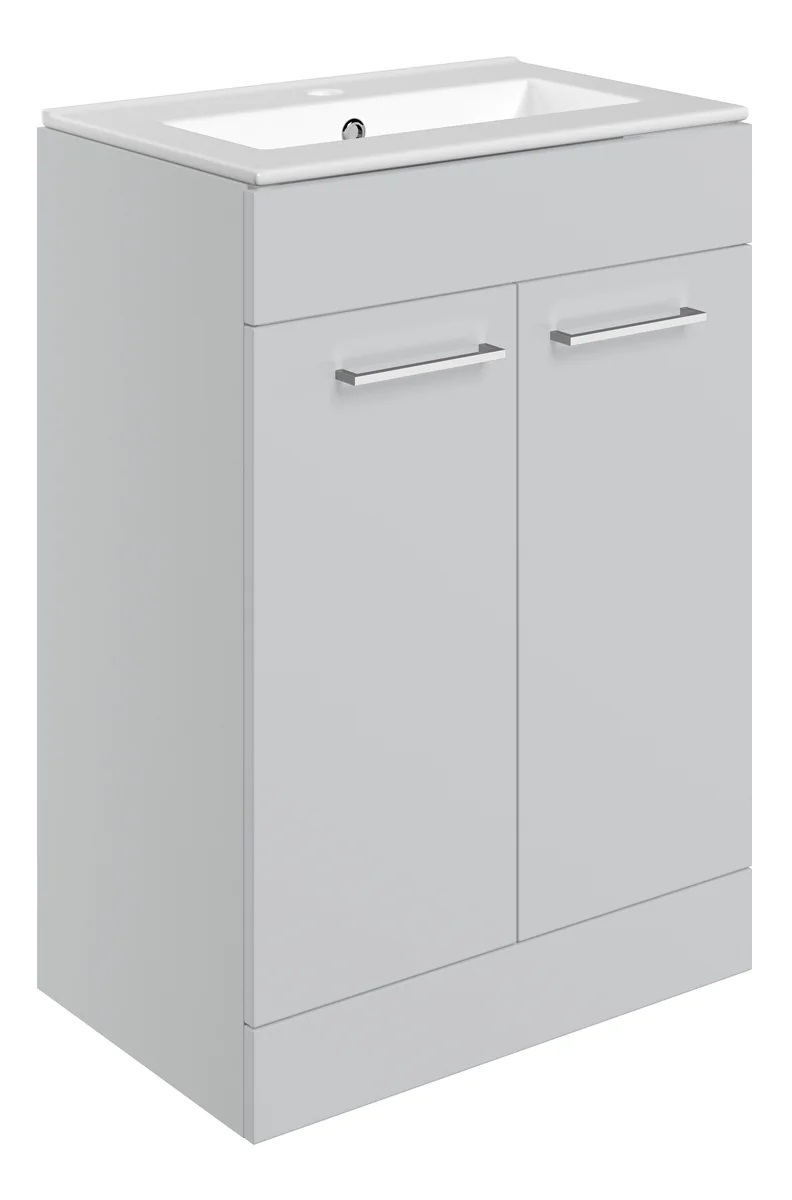 Novello Nolvra 610mm Floor Standing 2 Door Basin Unit & 1TH THin Edge Basin – Grey Gloss