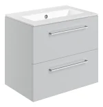 Novello Nolvra 610mm Wall Hung 2 Drawer Basin Unit & 1TH THin Edge Basin – Grey Gloss