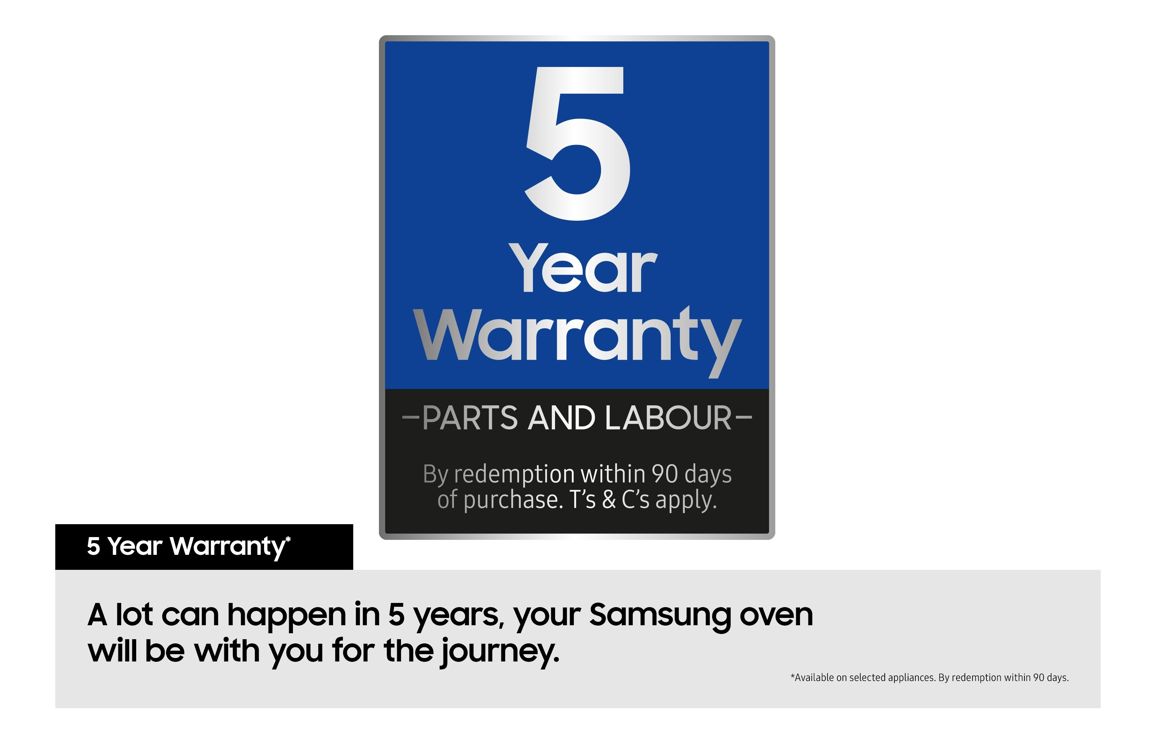 • 5 Year Parts & Labour (2 Standard – 3 redeemable on registration within 90 days of purchase by consumer/customer)