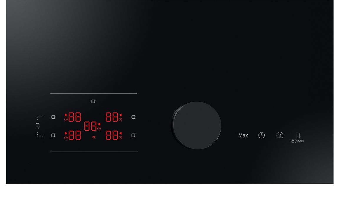 A Built In Samsung Induction Hob in Black • Number of Cooking Zones – 4 • Dimensions: H 48 x W 800 x D 520mm