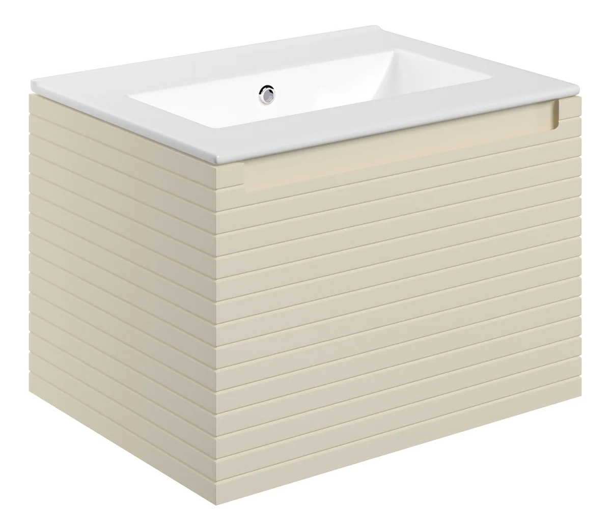 Strong 16mm cabinet sides back & door • Textured handleless furniture with soft horizontal fluted lines and a wrap around drawer box • Dimensions: H 418 x W 615 x D 460mm