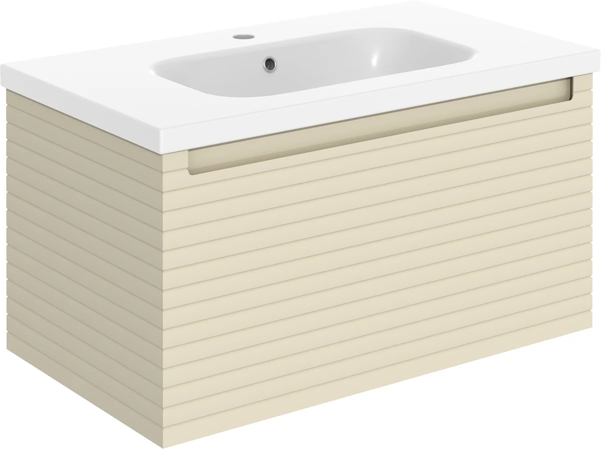 Novello Ulixa 815mm Wall Hung 1 Drawer Basin Unit & 1TH Basin – Matt Cotton