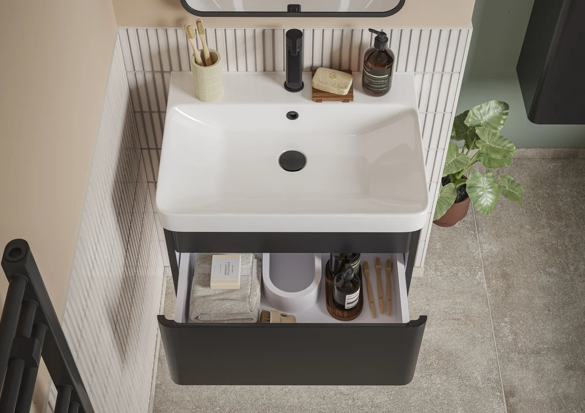 Novello Varvex 605mm Wall Hung 1 Drawer Basin Unit & Basin – Matt Black