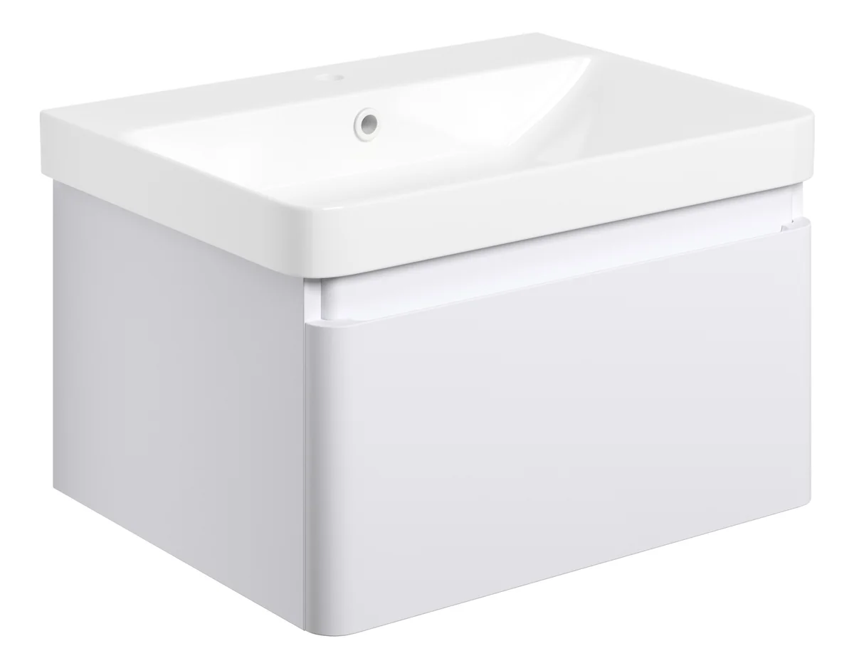 Novello Varvex 605mm Wall Hung 1 Drawer Basin Unit & Basin – Matt White