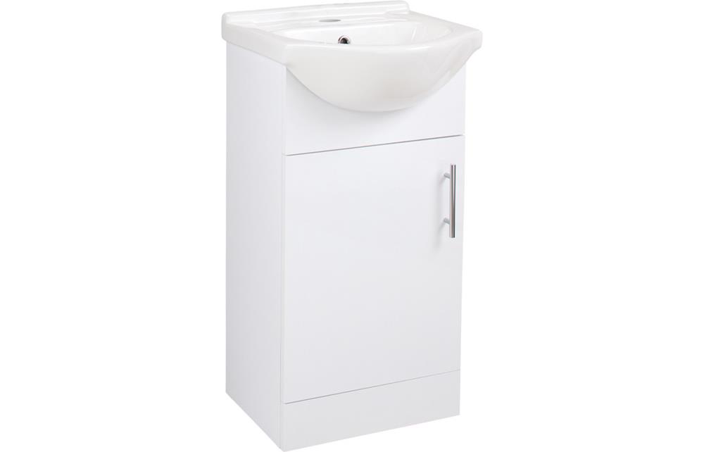 Pack includes: • 450mm Basin Unit & Basin – White Gloss • Dimensions: H 855 x W 450 x D 370mm