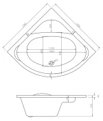 Double end modern corner bath • 390 litre capacity • Dimensions: L 1350 x W 1350 x H 620mm