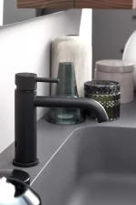 High Pressure Deck Mounted Matt Black Basin Mixer • Minimum Recommended Operating Pressure: 1.5 bar • Dimensions: H 168 x D 180 x W 41mm