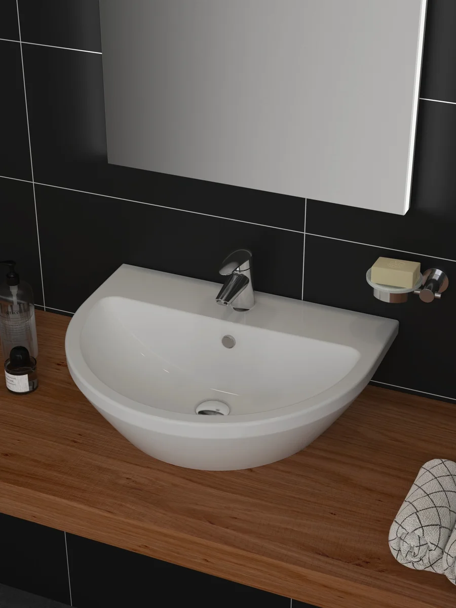 Includes: Basin Only • Comes with 1 Tap Hole • Dimensions: H 195 x W 595 x D 465mm