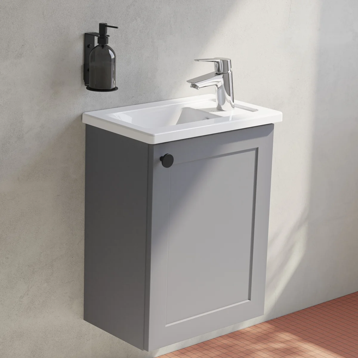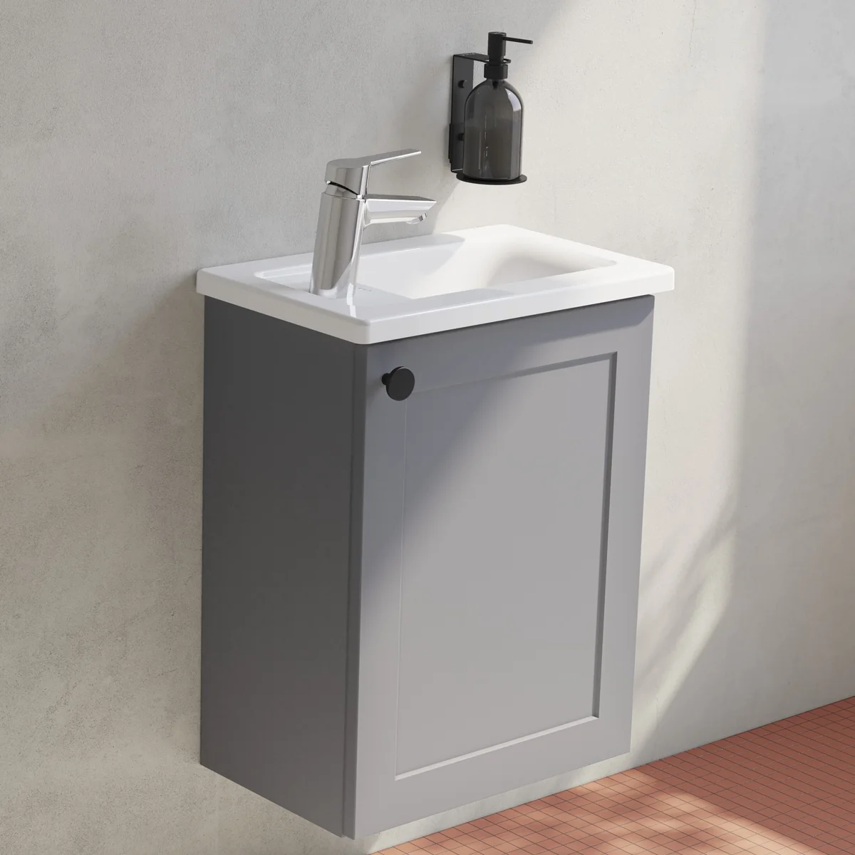VitrA Root Classic 40cm 1 Door Wall Hung Slim Washbasin Unit (RH Hinge) – Matt Grey