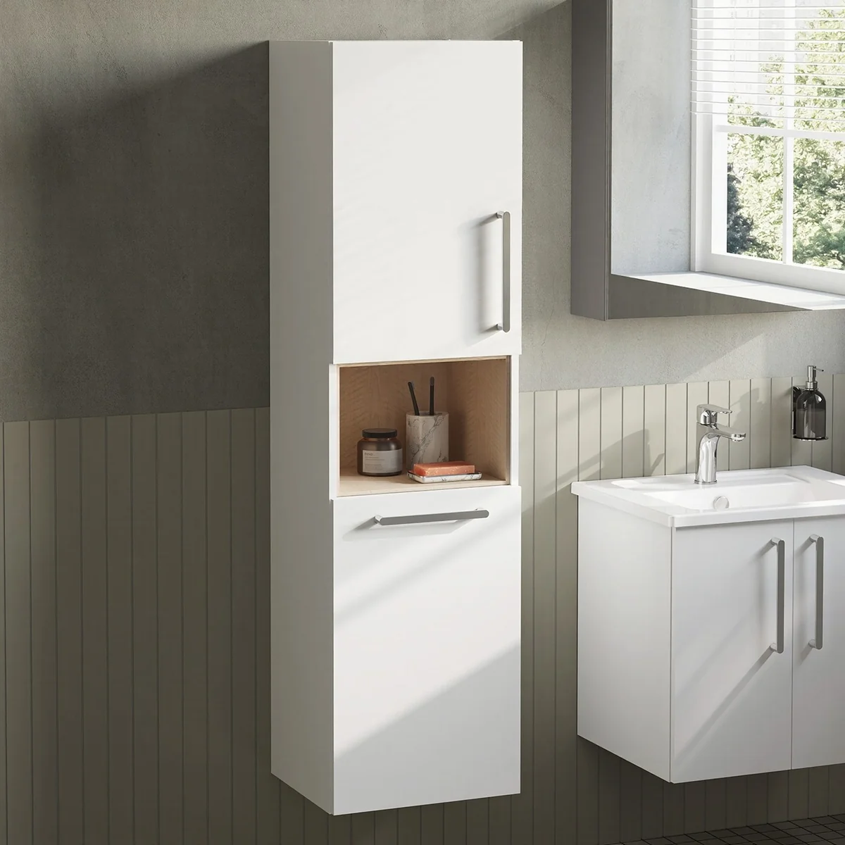 VitrA Root Flat 40cm 2 Door Tall Unit (LH Hinge) - High Gloss White