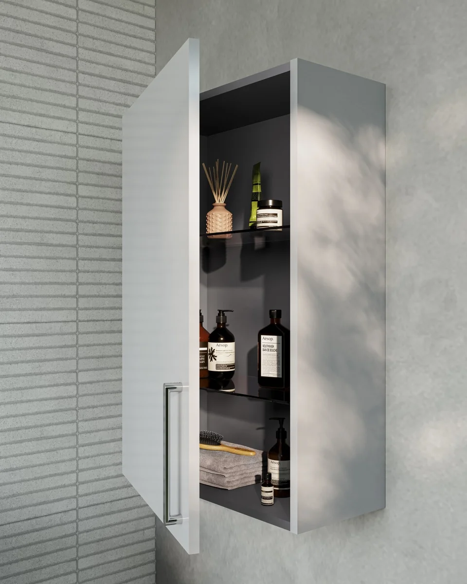 VitrA Root Flat 60cm 1 Door Upper/Wall Unit (LH Hinge) – Shiny Pearl Grey