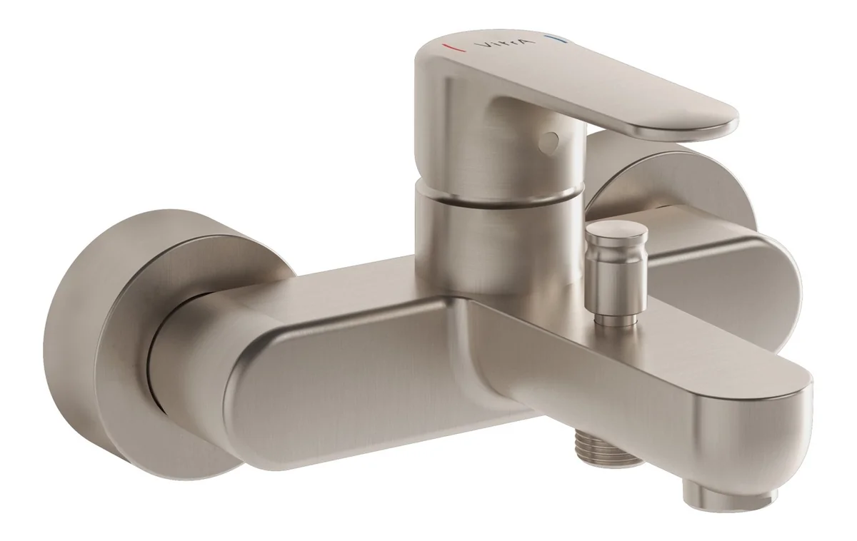 VitrA Root Round Wall Mounted Bath/Shower Mixer – Brushed Nickel