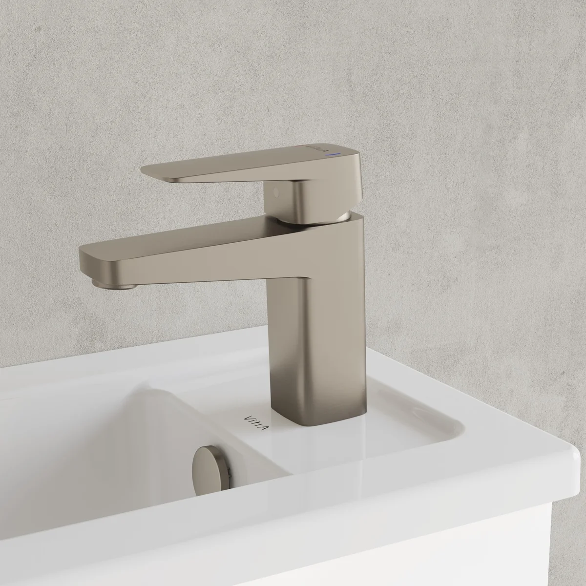 VitrA Root Square Compact Basin Mixer – Brushed Nickel
