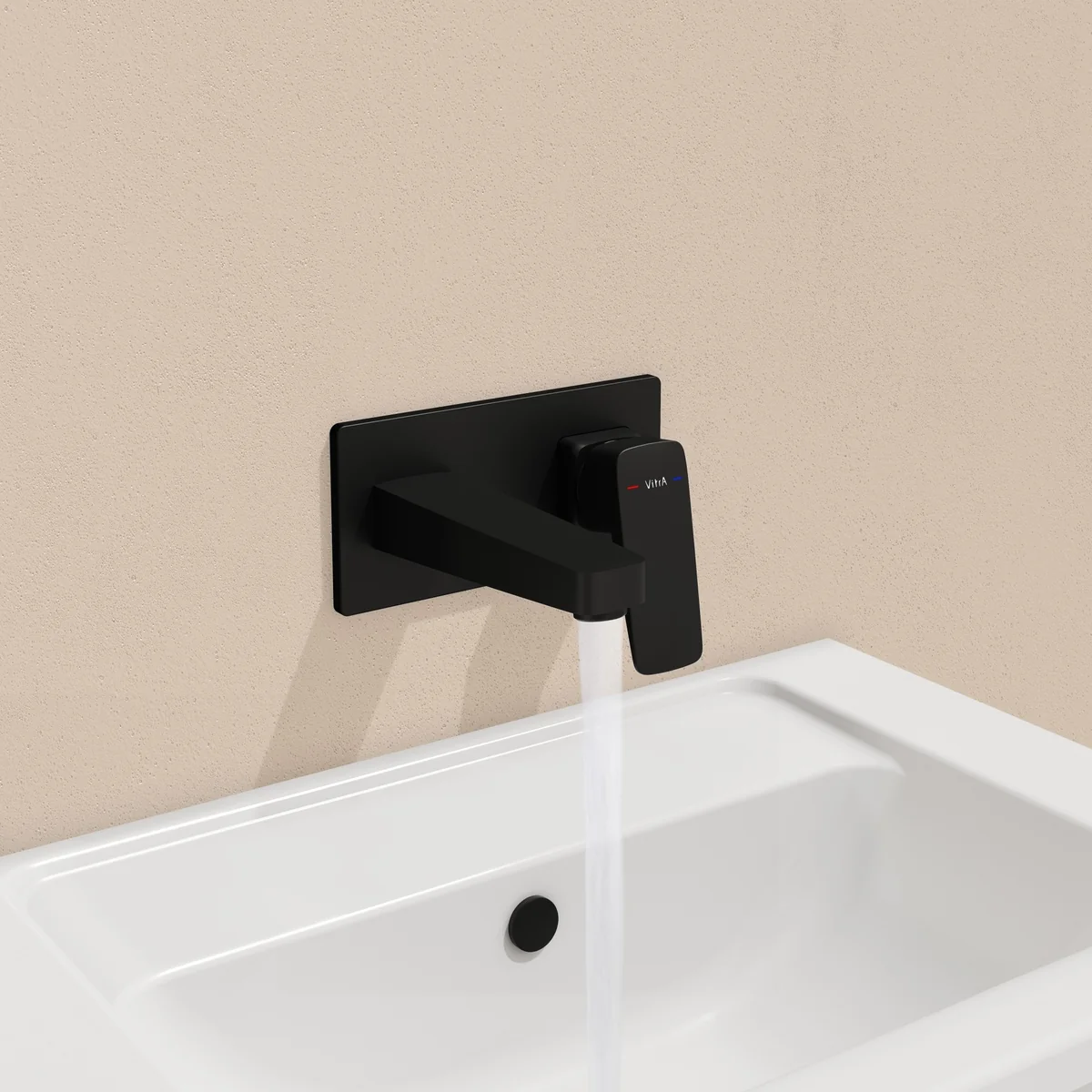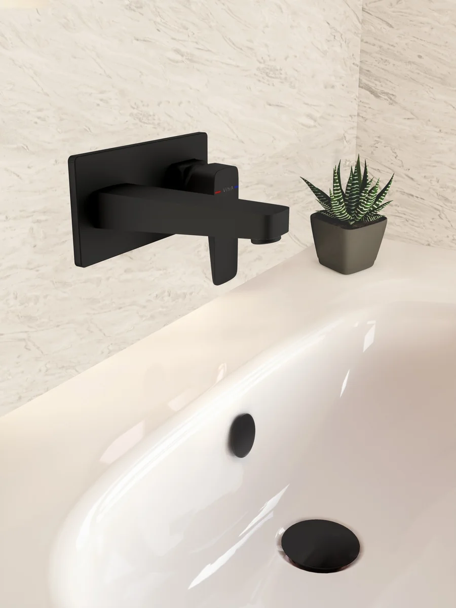 VitrA Root Square Wall Mounted Basin Mixer – Matt Black