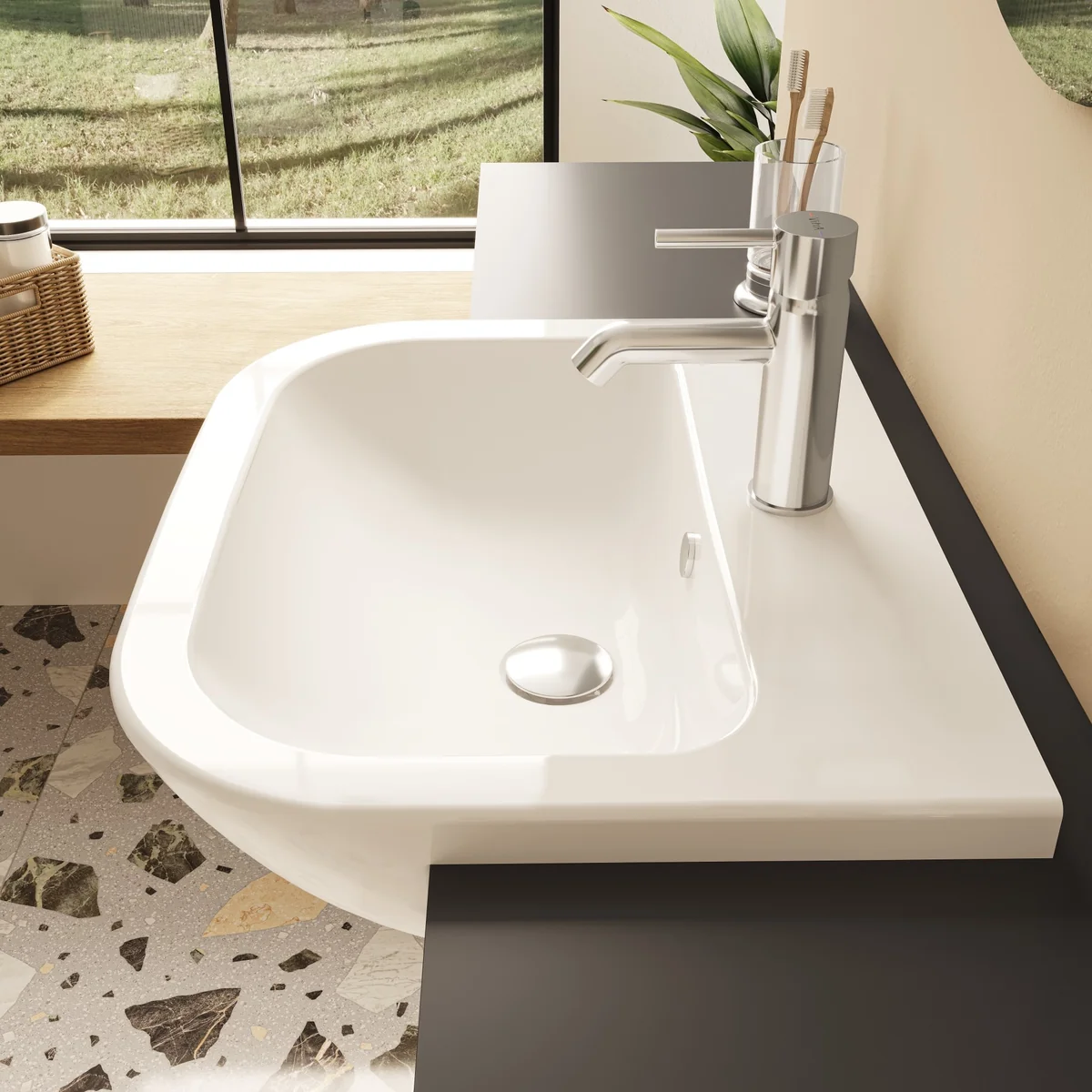 - Includes: Semi Recessed Basin
