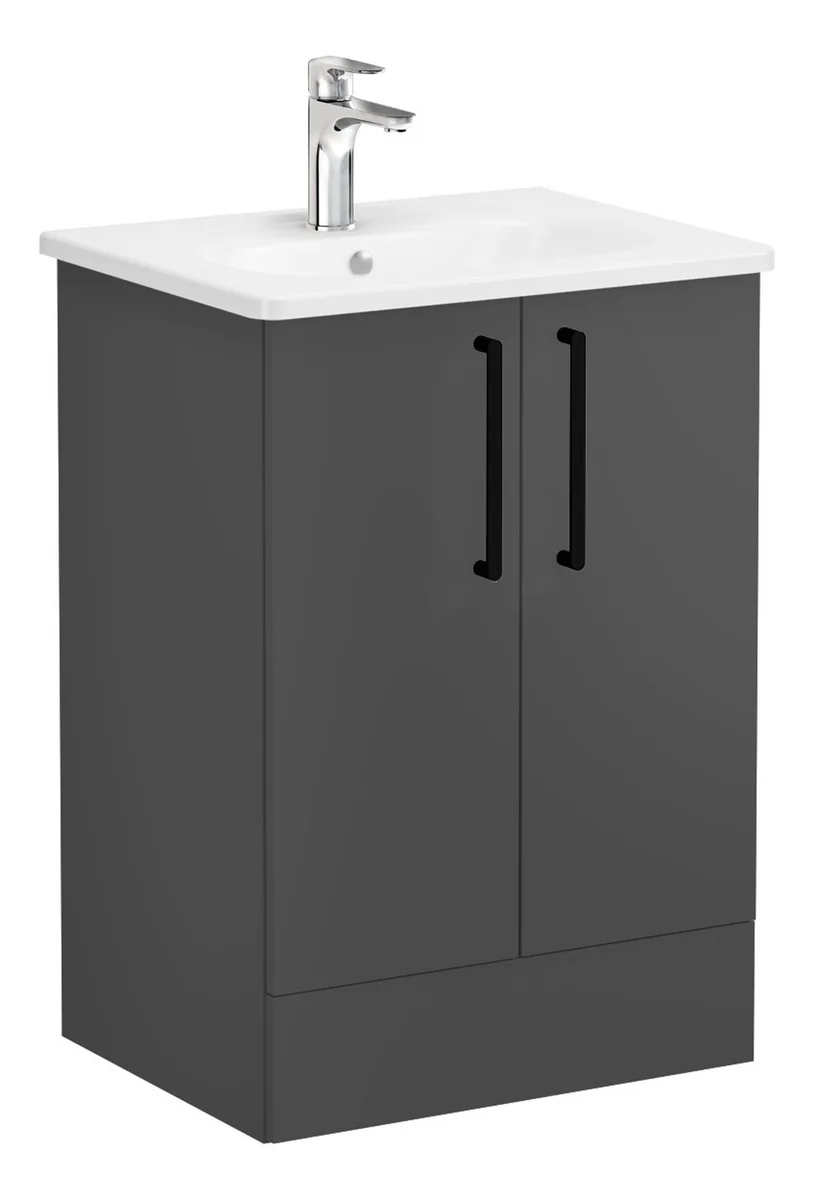 VitrA Zentrum 60cm 2 Drawer F/S Washbasin Unit – Matt Storm Grey
