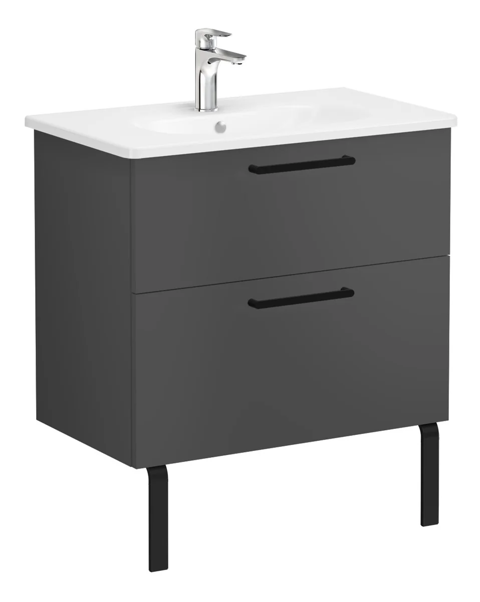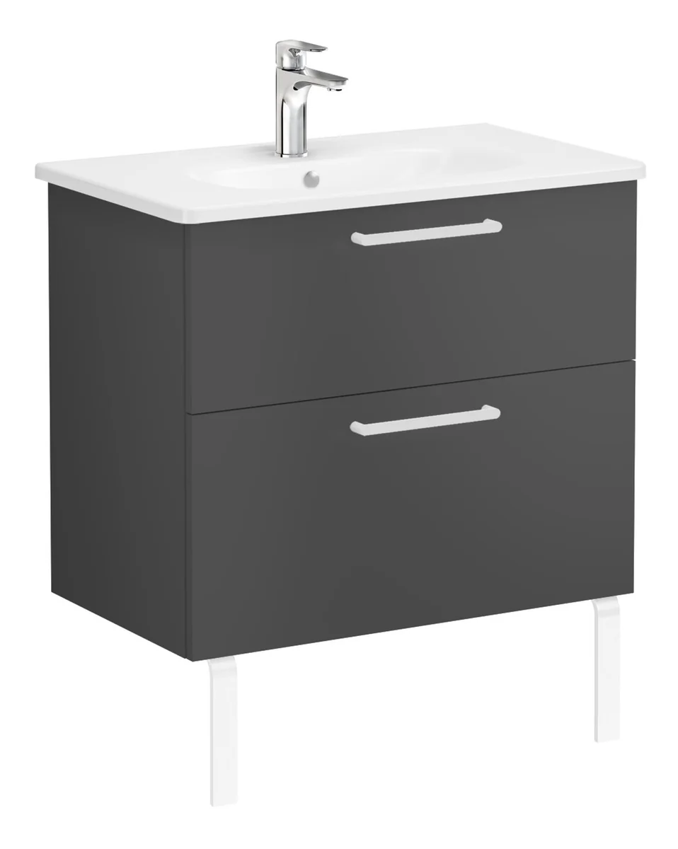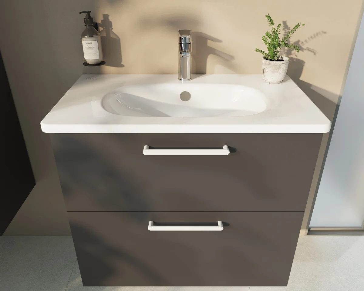 VitrA Zentrum 80cm 2 Drawer W/H Washbasin Unit – Matt Storm Grey